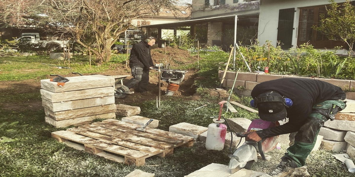 • Maçonnerie paysagère : murets, escaliers, soutènements et éléments décoratifs.