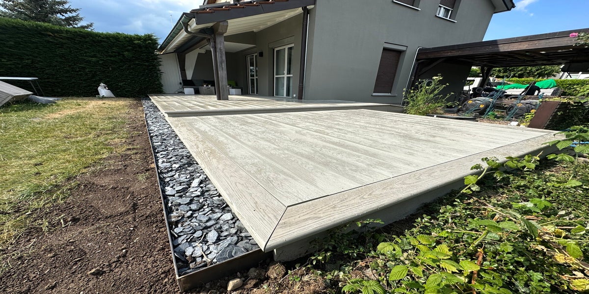 • Terrasses élégantes : dallage, pavage, pierre naturelle, bois et composite haut de gamme.